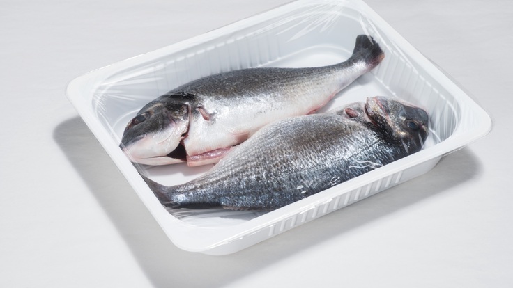La concentración de CO2 siempre debe estar por encima del 20% y puede ser tan alta como el 50% para lograr la máxima extensión de la vida útil. Dependiendo de la temperatura de almacenamiento (0-2 °C), estos paquetes pueden prolongar la vida útil del pescado crudo en una bandeja con envoltura de película de 3 a 5 días.