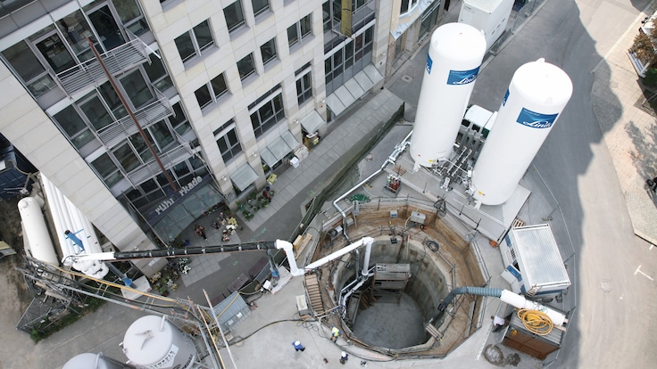 La inestabilidad de un terreno y los sedimentos sueltos pueden plantear graves problemas de seguridad y operación durante los trabajos subterráneos y de excavación de túneles. El terreno debe estabilizarse de forma segura para que no se derrumbe durante la excavación y los trabajos de construcción posteriores. Una forma de lograrlo es congelando las áreas críticas del terreno con nitrógeno (N2). Las lanzas se insertan en el suelo y descargan nitrógeno líquido (LIN). Las áreas congeladas alrededor de las lanzas aumentan la capacidad de carga estática y la impermeabilidad del suelo. Esto permite que los trabajos de perforación y excavación de túneles continúen de forma segura. Desarrollamos una amplia e innovadora cartera de lanzas con diferentes perfiles de área de congelamiento para aplicar el nitrógeno líquido y, de esta forma, hacer frente a diferentes desafíos de congelamiento del terreno, excavación y estabilización del suelo con la ayuda de nitrógeno líquido.